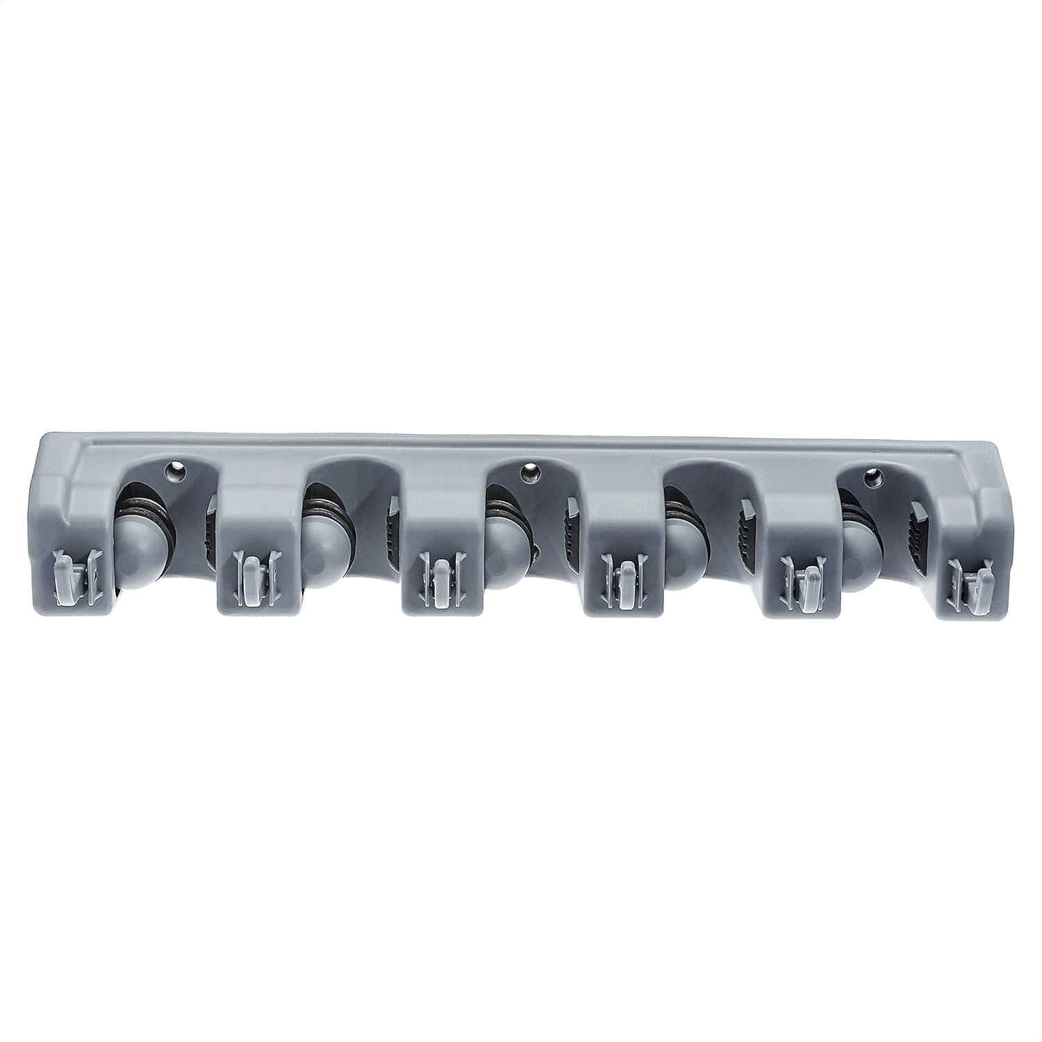 Keep your home or workspace perfectly organized with the Amazon Basics Rectangular Heavy Duty Wall Mount Broom and Mop Holder. This sturdy tool organizer features 6 foldable hooks and 5 slip-resistant slots, securely holding up to 35 pounds of mops, brooms, and garden tools. Made with durable, weather-resistant ABS plastic, it's ideal for the garage, kitchen, laundry room, or garden shed. Easy installation and user-friendly design make it the perfect solution for decluttering any area.
