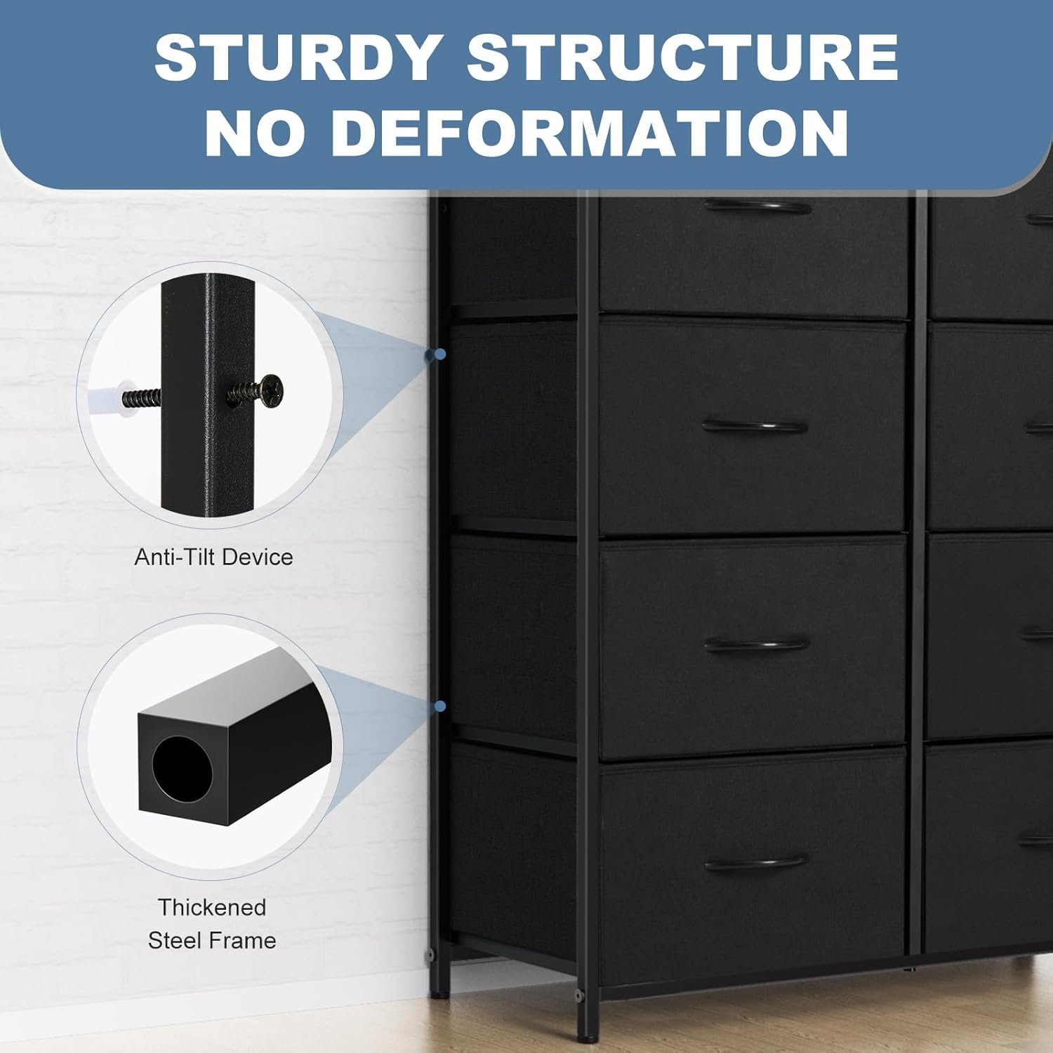 • Sturdy Construction: The metal frame dresser structure ensures enhanced durability while anti-tip dresser straps add safety – ideal for families with children or pets.