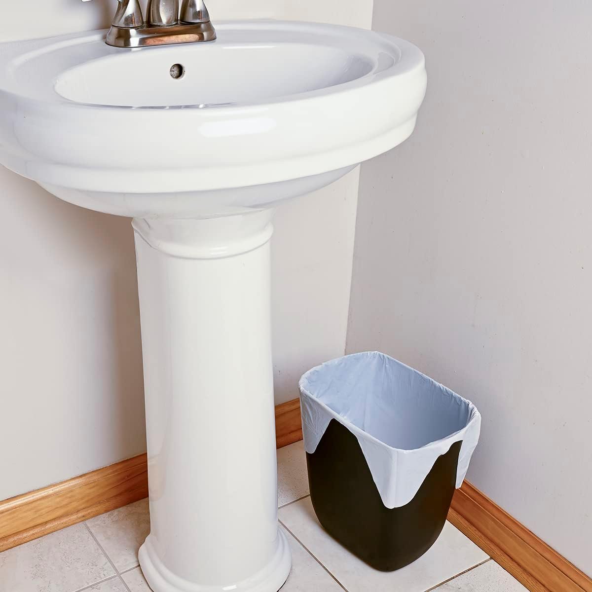 With 80 count per box and thin-yet-resilient plastic, these mini trash bags are well-suited for daily disposal in tight spaces. Their flap tie closure ensures quick sealing and removal, making them ideal for busy households or office environments.